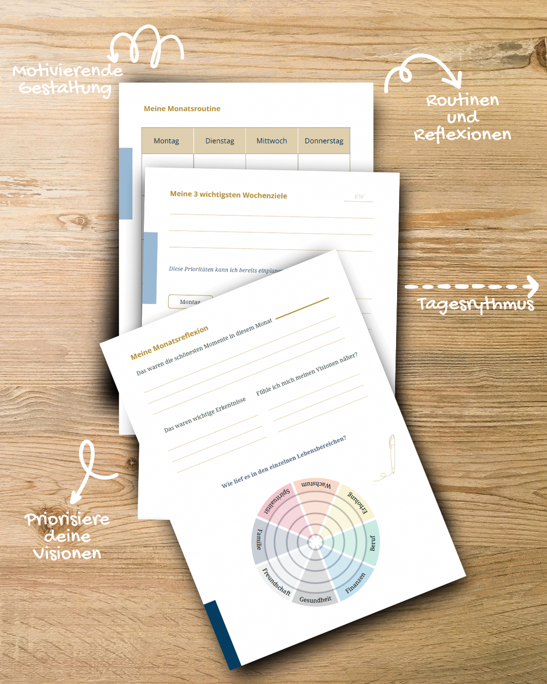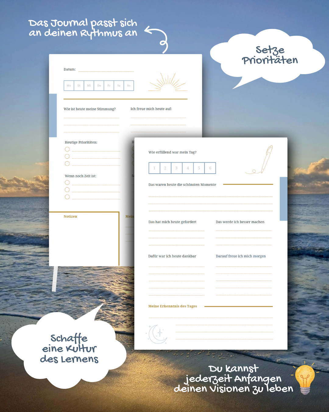 ✅ Strukturierte Routinen für Morgen und Abend, Wochen- und Monatsreflexionen.